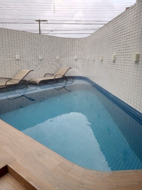 Lazer com piscina, salão de festas e salão de jogos na cobertura.