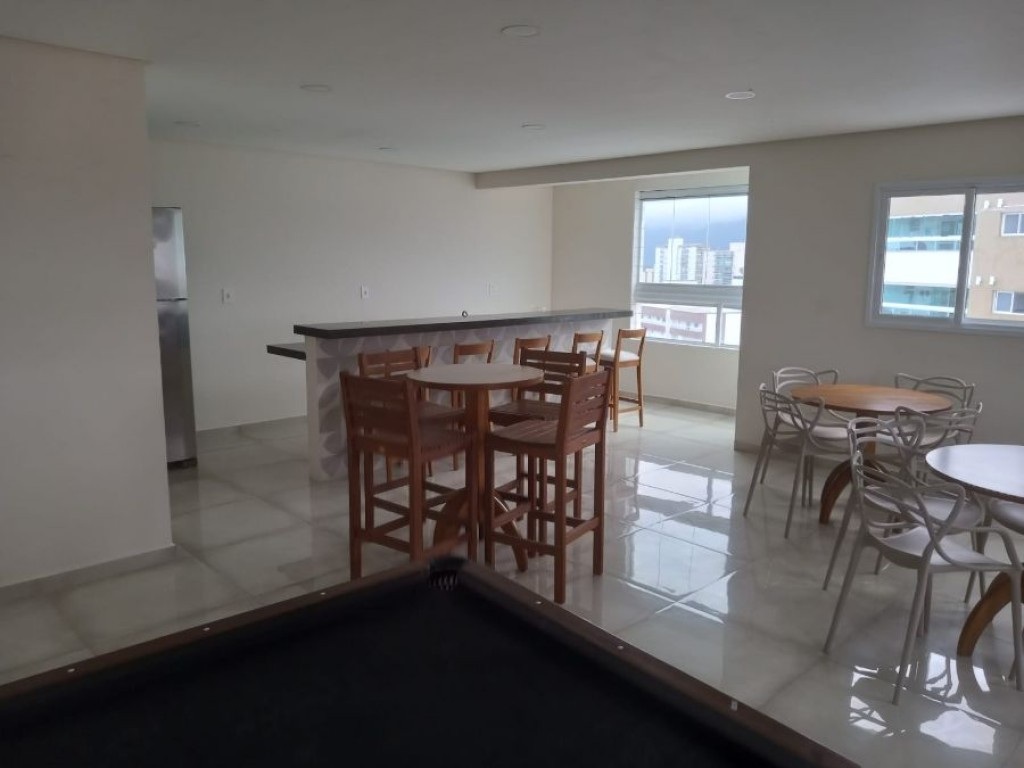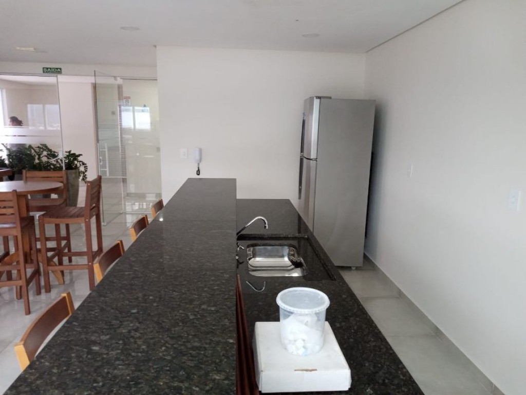 Sala com sacada gourmet, cozinha americana, wc social, lavanderia, 1 VAGA de garagem.