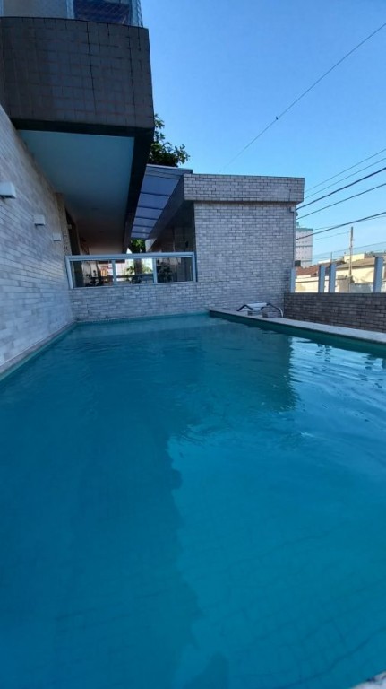 Lazer com piscina, salão de festas e salão de jogos.
